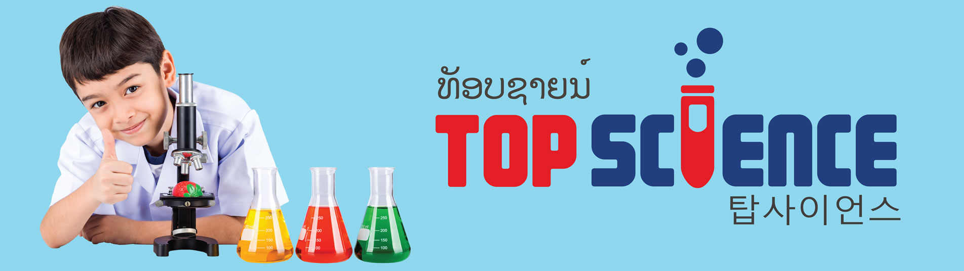 ຍິນດີຕ້ອນຮັບສູ່ ເວັບໄຊທ໌ ທັອບຊາຍນ໌ ລາວ (Top Science Laos)ທັອບຊາຍນ໌ (Top Science) ເປັນສູນການຮຽນຮູ້ ໂດຍໃຊ້ວິທີການຖ່າຍທອດຄວາມຮູ້ ກ່ຽວກັບວິທະຍາສາດ ແບບໃໝ່ຈາກປະເທດເກົາຫລີໃຕ້ ສຳລັບເດັກນ້ອຍ ອາຍຸ 6-14 ປີ, ແນໃສ່ເສີມສ້າງທັກສະດ້ານການວິເຄາະ ແລະ ແກ້ໄຂບັນຫາດ້ວຍເຫດ ແລະ ຜົນໃຫ້ແກ່ເດັກນ້ອຍ ໃນການກະກຽມເຂົາເຈົ້າໃຫ້ພ້ອມ ເພື່ອເປັນຜູ້ໃຫຍ່ທີ່ມີຄຸນນະພາບ.